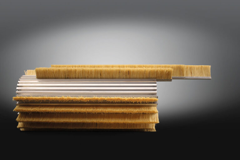 Les brosses strips enroulées sont constituées d’un corps tubulaire acier ou acier inoxydable et de la brosse strip interchangeable adaptable sur l’axe. Le tube peut être fourni avec l’arbre ou avec des trous de fixation permettant le montage sur l’axe existant. Les brosses strips enroulées peuvent être fixées aux extrémités du tube ou insérées entre deux flasques sur le tube. Nous proposons également des brosses montées sur un corps en aluminium rainuré. Les brosses strips sont glissées dans ces rainures et donc bloquées radialement.